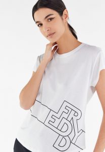 フロントの下部とバックのネックラインの下にカラーのアウトラインMOVEロゴが施されたモーダルジャージーのトップTシャツ。 こちらのモデルは半袖、丸いネックライン、丸みを帯びたボトム、そして体のラインにそっと従うレギュラーフィット仕様です。 ウエストにショートカットを施したデザインは、滑らかでシルキーな表面が特徴の生地の心地よい柔らかさを組み合わせ、動きの自由を必要とするフィットネスやダンス、ダイナミックなレジャーにも最適なこのTシャツの快適さを強調しています。