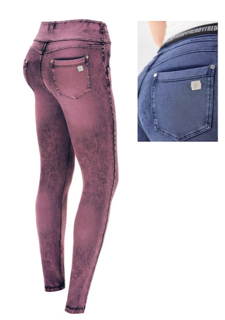 ストレッチジャージー、デニム効果のカラーアシッドウォッシュN.O.W.®パンツ。