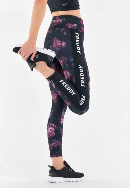全体に花柄のテクスチャーが施され、ブラックサイドバンドに対照的なFREDDYロゴが施されている革新的なFreddy Energy Pants®レギンスは、エネルギー経絡に対応して挿入された特別なアルミニウム半球によって潜在エネルギーを引き起こし、エネルギーマップをアクティブにします。こちらのモデルはハイウエスト、丈は7/8仕様で、ベルトにマイクロポケットがあります。またベルトの裏側にあるFreddyEnergy®のロゴがスタイルのディテールを完成させています。