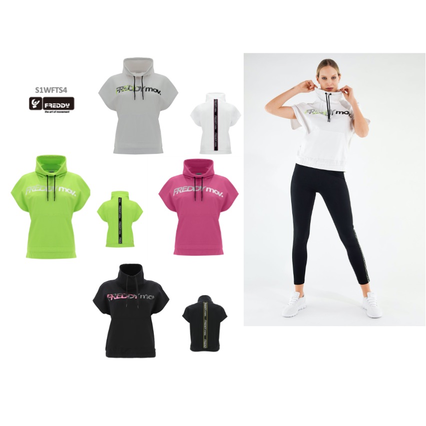 FREDDY MOV フロントロゴ付きのコンフォートフィットストレッチジャージー半袖スウェットシャツ。 背面にブランドのジャカードリボン。 ハイファンネルネックはドローストリングで調整され、 ゆったりとしたキャップスリーブ。 フロントにポーチキャンプポケットを備えています。柔らかくしなやかな生地と明るいFREDDY MOVのロゴとで組み合わされた魅力的なデザインの快適なウエアは、 アクティブなFREDDY MOVスピリッツを強調しています。